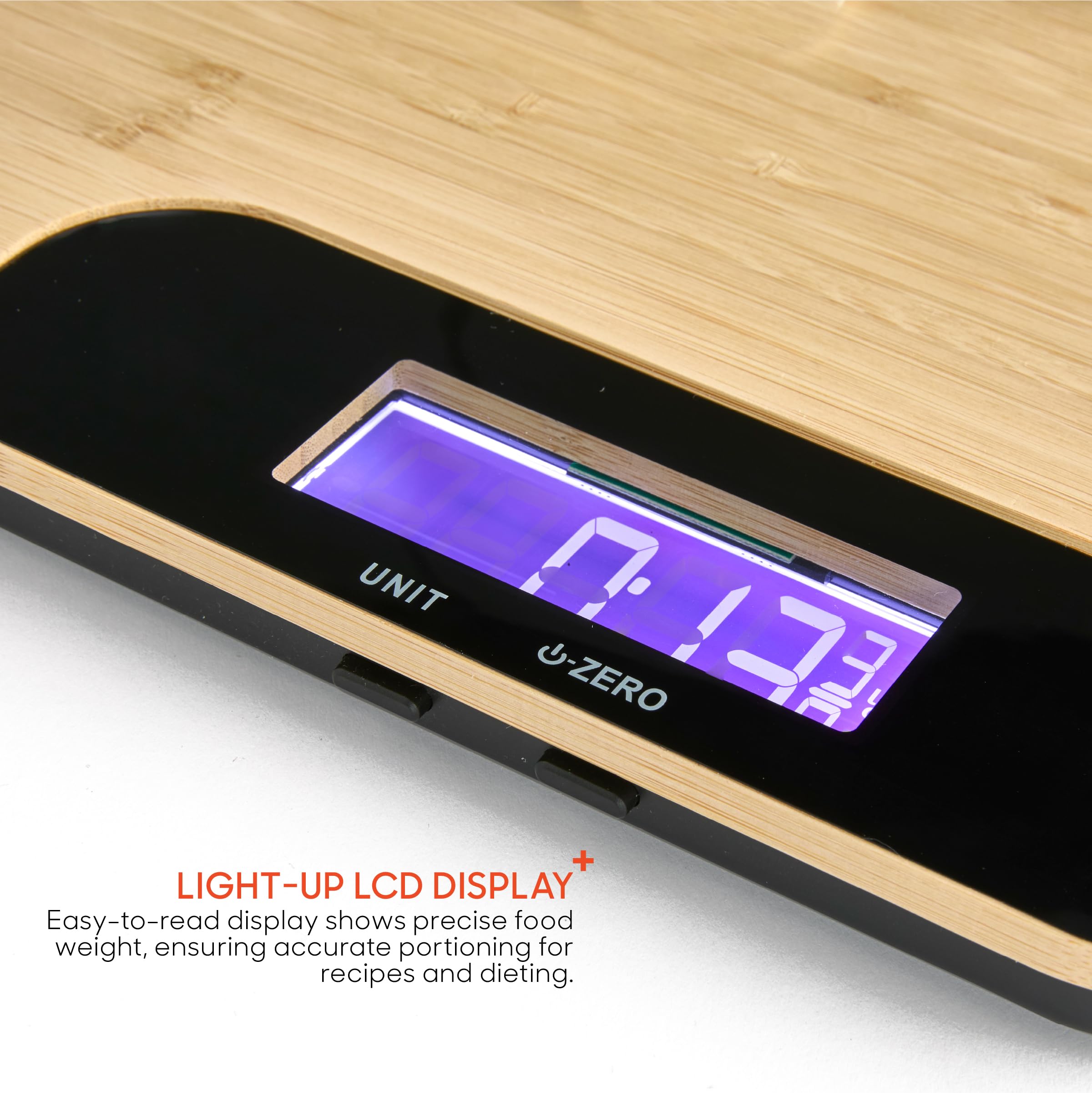 - Bamboo Cutting Board with Digital Scale: Streamline meal prep with a dual purpose kitchen essential. A water resistant cutting board, paired with a built-in digital food scale. Suitable for prepping, chopping, and weighing all in one place. It accurately weighs ingredients while you cut, helping you follow recipes and track meals with ease